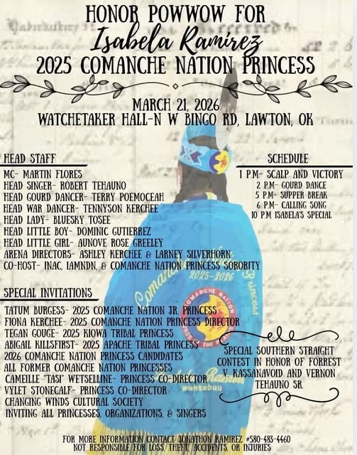 The post Honor Pow Wow for Isabela Ramirez 2025 Comanche Nation Princess appeared first on Pow Wow Calendar.
